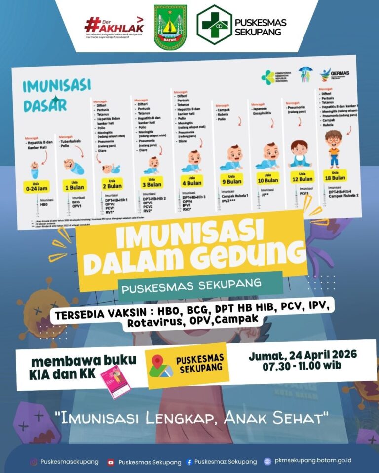Halo #sobatsehat KamiSuka Puskesmas Sekupang Jangan lupa setiap tgl 24 ada Imunisasi Dalam Gedung di Puskesmas Sekupang. Pastikan hak anak terpenuhi dengan...